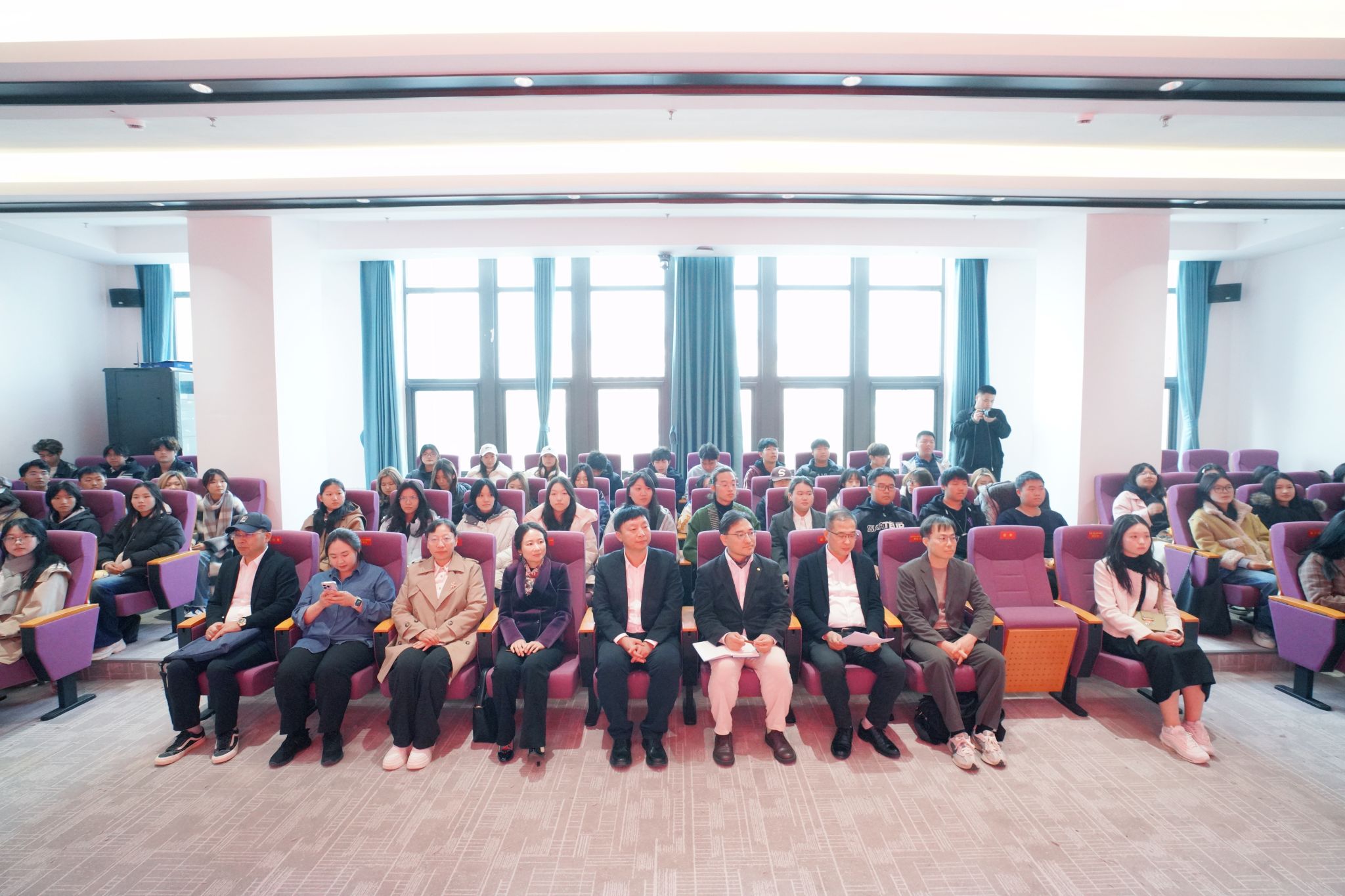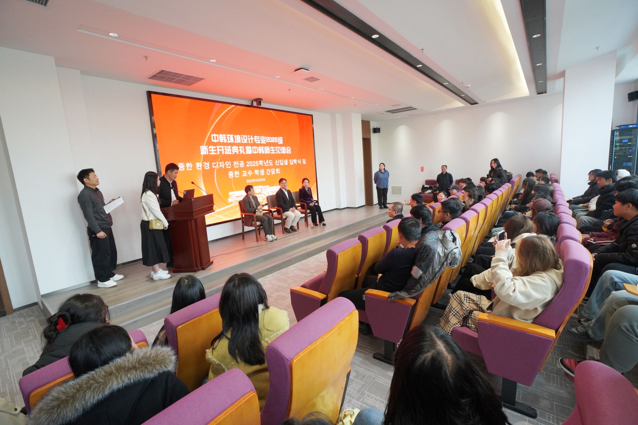 10月24日下午,2025级中韩环境设计专业新生开班典礼于图书馆二楼报告厅举行。 韩国圆光大学国际处处长姜延锡、造型美术学院室内・产业设计专业主任安玹正、室内・产业设计专业教授朴正主、国际处沈贞儿、张礼智老师、艺术学院党委书记林琳、艺术学院院长赵志策、国际交流合作处处长安尚勇、艺术学院副院长郑新涛、国际交流合作处对外交流科科长易全格、艺术学院相关老师及2025级中韩环境设计专业全体新生参加了本次典礼。